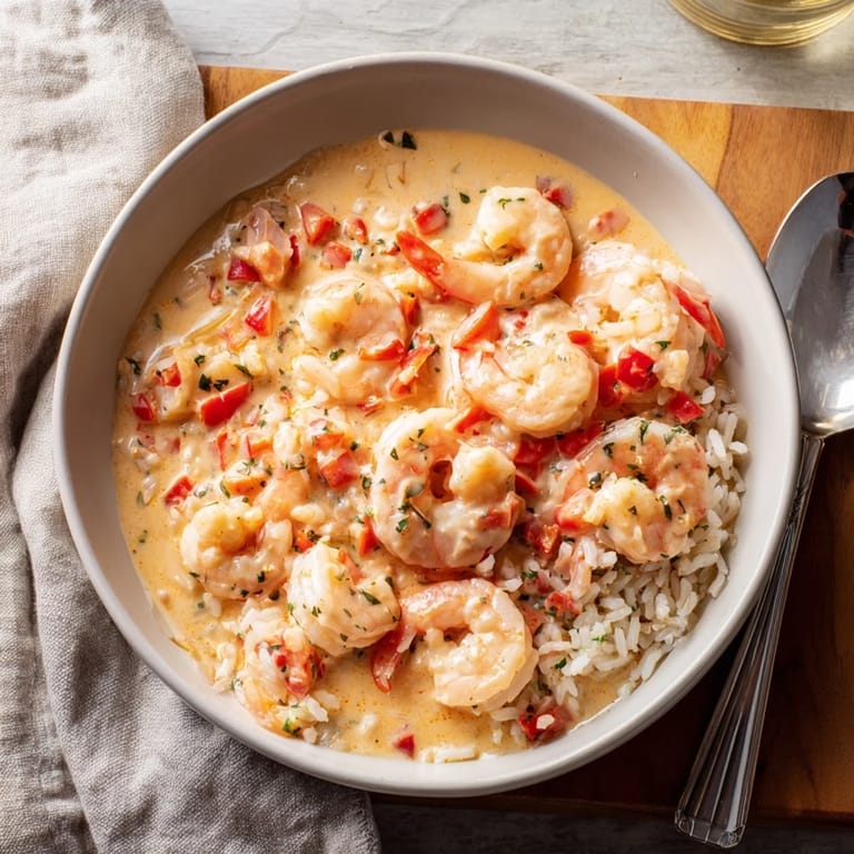 Cook rice and shrimp separately and store in the refrigerator for up to 2 days. Prepare the cream sauce fresh just before serving for best texture and flavor. Reheat gently over low heat, adding a splash of broth if needed.