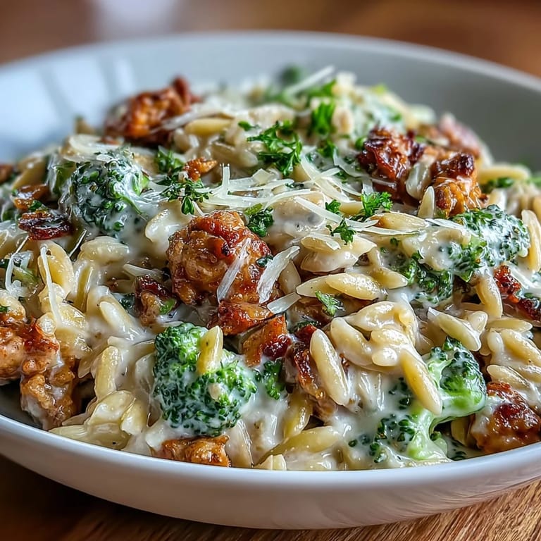 Save My partner came home one Wednesday evening craving something warm but didn't want the usual pasta routine, so I rummaged through the fridge and found ground turkey, broccoli, and cream—and somehow this silky, garlicky dish came together in under an hour. What started as improvisation turned into something we make every couple of weeks now, because it hits that sweet spot between comfort food and something that feels genuinely special. The orzo cooks right in the pan with everything else, soaking up all those savory flavors, and there's this magical moment when the cream swirls in and transforms the whole thing into something almost restaurant-quality.