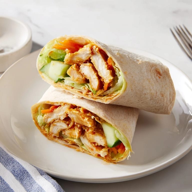Save These wraps have become my go-to when I want something that feels special but does not require hours in the kitchen. There is something deeply satisfying about biting into all those layers and textures at once, the way the sweet and spicy sauce mingles with cool vegetables. It is the kind of meal that makes you pause between bites and appreciate what you have created.