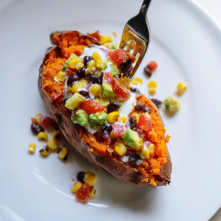 Save A wholesome, satisfying weeknight dinner featuring tender baked sweet potatoes, generously topped with a flavorful mix of black beans, corn, avocado, and a tangy yogurt sauce. Minimal prep, maximum comfort!