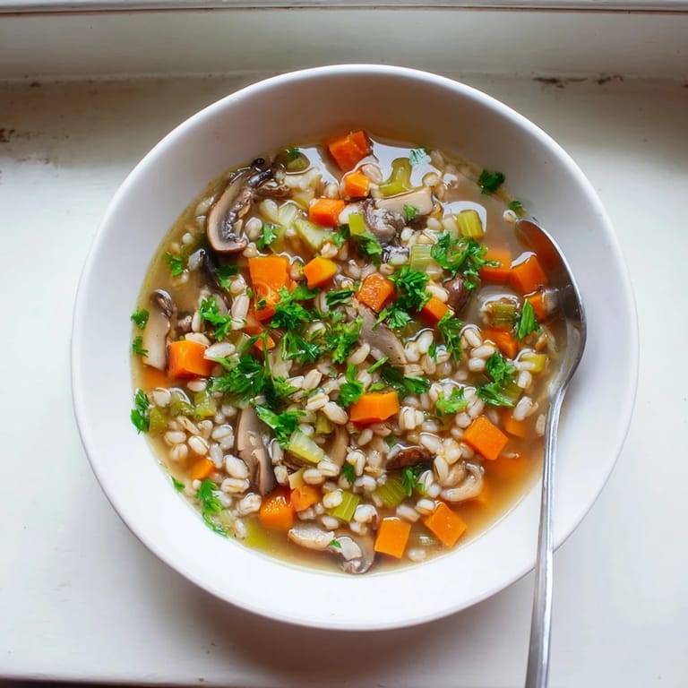 Save The first time I made mushroom and barley soup, it was purely by accident. I had bought barley for some other recipe that never happened, and a container of mushrooms was looking at me questioningly from the fridge. That rainy afternoon improvisation turned into something my roommate kept asking about for weeks afterward. Now whenever theres a chill in the air, my hands automatically reach for those same ingredients.