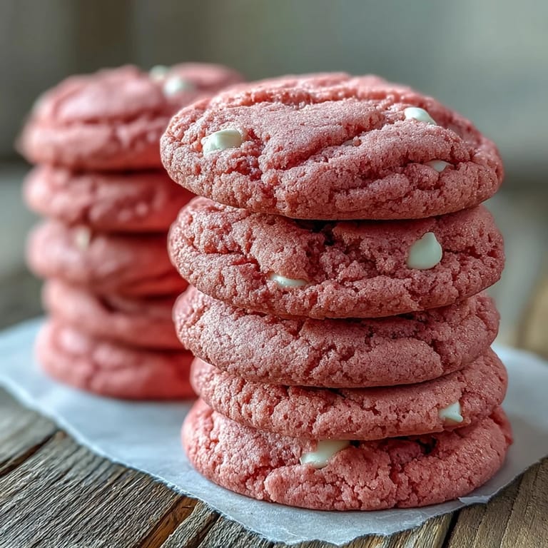 Save My daughter walked into the kitchen one Saturday morning and announced she wanted to bake something pink. Not just any pink, but the kind of pink that made you smile before you even took a bite. We rifled through the pantry, found white chocolate chips and a tiny bottle of gel coloring tucked behind the sprinkles, and spent the afternoon turning our kitchen into a soft pink wonderland. The cookies came out pillowy and sweet, and she declared them better than any bakery treat. Ive been making them ever since, whenever someone needs a little extra brightness.