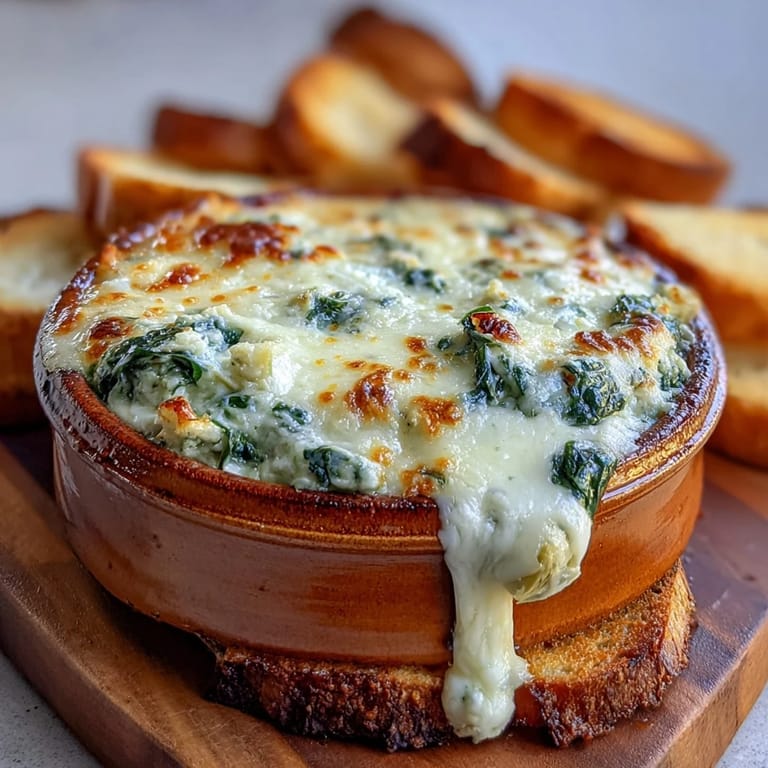 Save Celebrate St. Patrick's Day with a creamy twist by serving this festive spinach and artichoke dip baked right inside a crusty sourdough bread bowl. It's loaded with cheeses and fresh ingredients, making it the perfect appetizer to share with friends and family. This comforting dish is not only visually impressive but also delightfully tasty, inviting everyone to dig in with warm bread chunks or crunchy veggies.